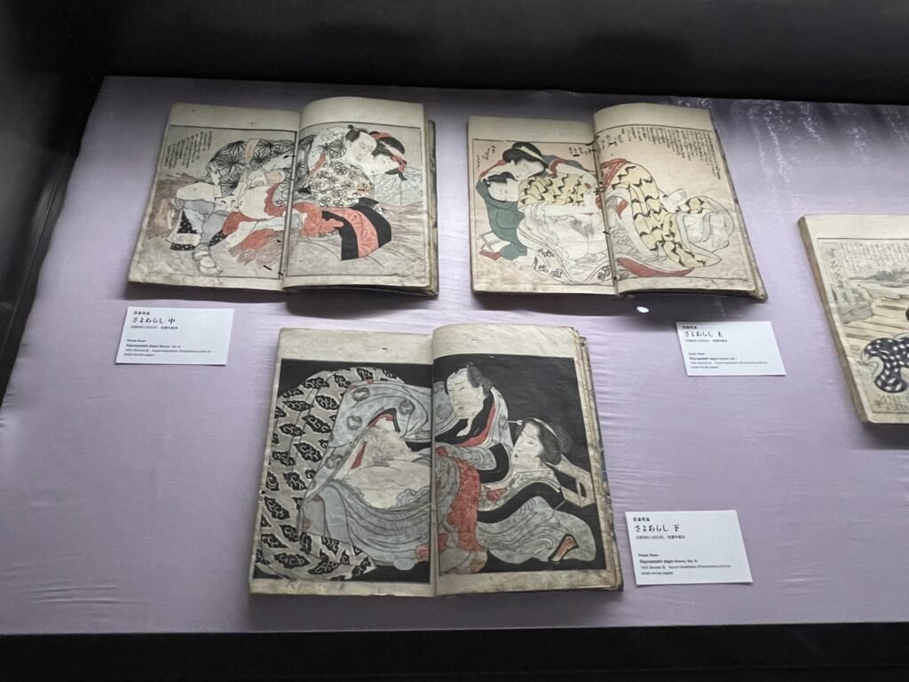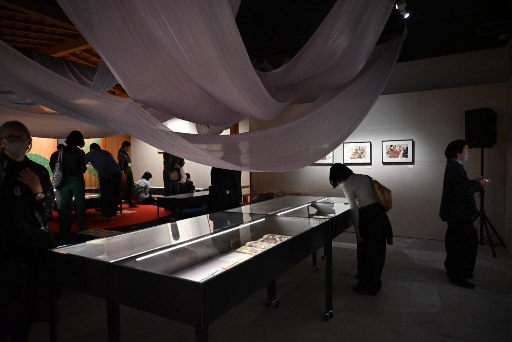 春画が長く「秘宝館」の文脈でも見られてきたことを踏まえると、歌舞伎町で春画展を開く今回の企画は、放っておけばショッキングさや卑猥さだけが前に出る危うさも抱えている。浦上が会見で繰り返し示していたのは、まさにそこへの警戒感だった。ここを「歌舞伎町秘宝館」にしてはいけない――。そうした意思のもと、本展では状態のよい実物を、美しいものとして、作品として見せることに細心の注意が払われている。春画を見世物として消費させるのではなく、人間の可笑しみや欲望、美意識の表現として、アート作品として対面させる。そのための展示設計が、この企画の根底にある。