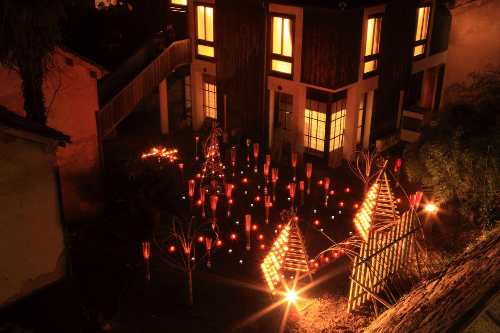 毎年10月末または11月最初の土曜・日曜にたけはら町並み保存地区では、竹筒に入れた蝋燭が灯され幻想的なライトアップが行われています。