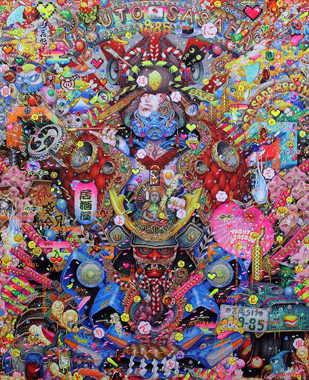 今回の個展『OVERLOAD』では、僕自身の脳内に溢れ出すイメージと、現代社会が抱える情報の濁流をキャンバスに叩きつけた結果出来上がった作品を展示しています。