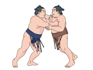 あるとき家康と秀康は諸大名と共に相撲見物をしていました。観客たちは勝負に熱狂するあまり大騒ぎになります。